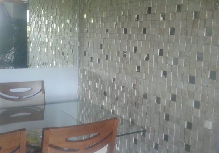 Instalação de pedras naturais (mármore, granito e canjiquinha), revestimentos 3D, pastilhas e painéis decorativos. Indicados para valorizar fachadas, banheiros, cozinhas e áreas gourmet.